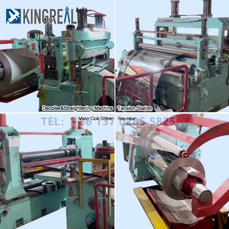 Kingreal ferro Sildmi coil slitting apparatus est disposito ad dividere diversas materiae ut frigus, advolvit Steel tabellae, calidum, advolvit Steel velit, immaculata ferro, aluminium commercio, et tandem in steel, aut aluminum recoiling in fine, et postremo in steel, aut aluminium, et tandem in stait et tandem, aluminium et tandem in fine Sils.